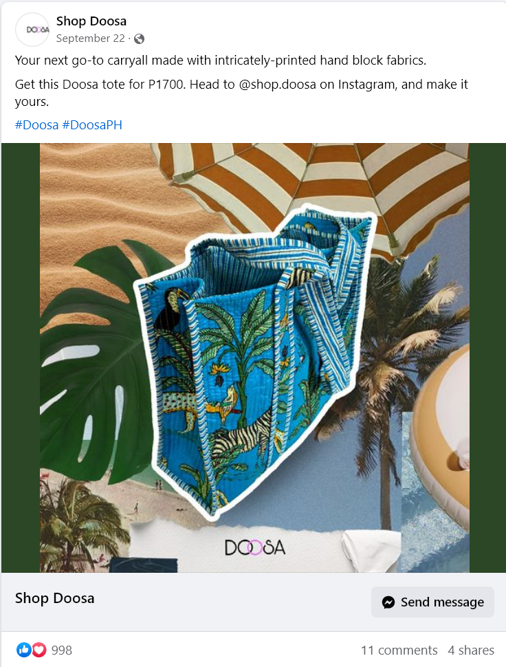 Doosa is a local, artisanal e-commerce brand selling handcrafted bags made by Filipino artisans.