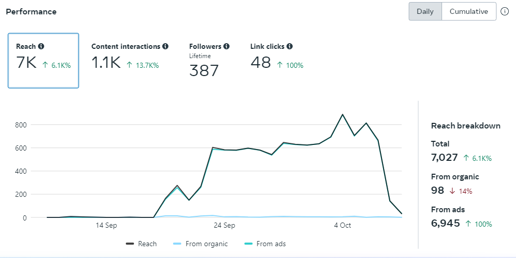 After a month of running the ad campaigns, Doosa saw remarkable growth in brand awareness, reach, and engagement. Brand reach increased by an impressive 6.1K%, significantly expanding visibility to a broader audience. Interactions increased by 13.7K%, with interactive content driving substantial engagement throughout the campaign.